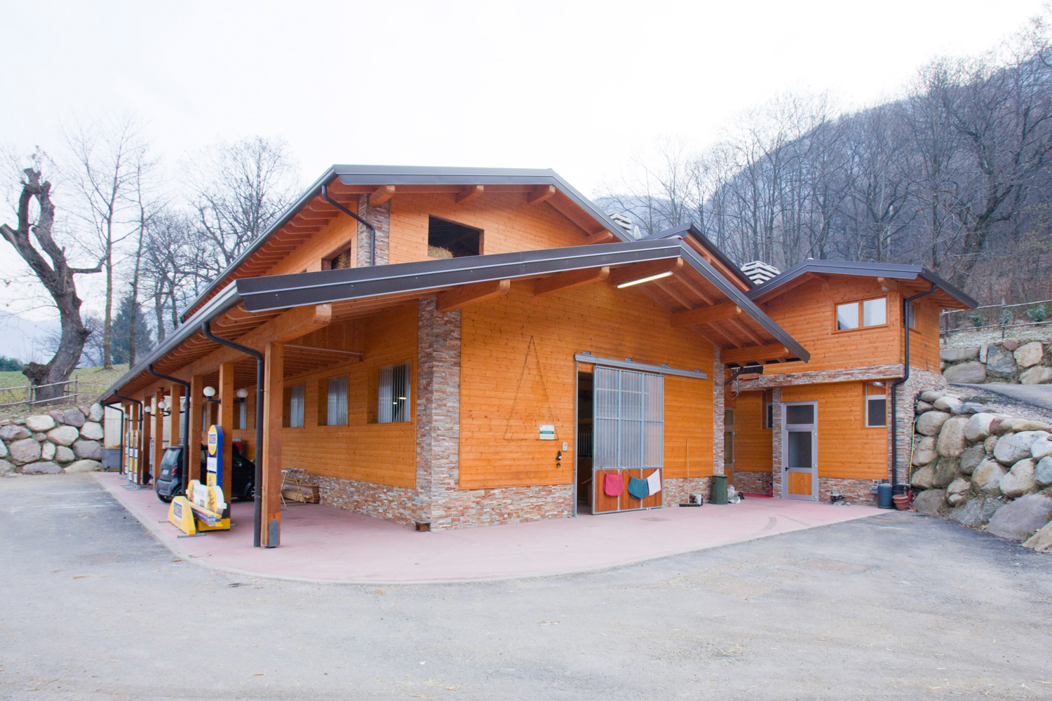 Formazione tetto maneggio con travature in legno lamellare di abete, rivestimenti esterni e realizzazione casetta in legno.